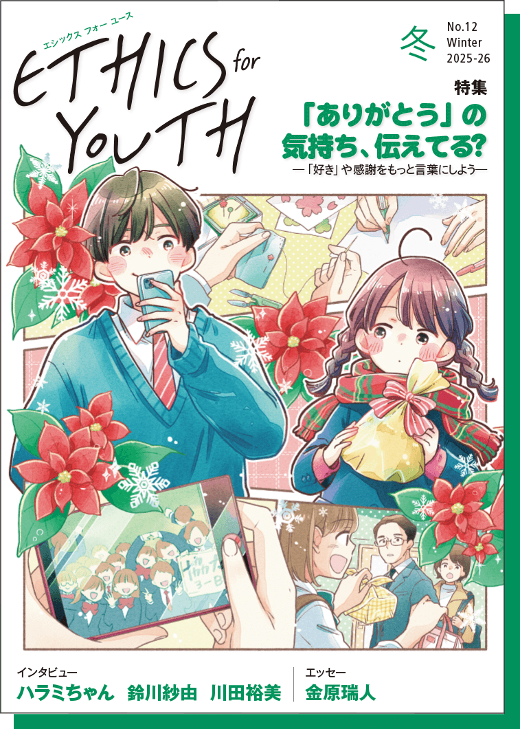 ユース世代のための倫理マガジン『ETHICS for YOUTH(エシックス フォー ユース)』のウェブ版です。中高生の皆さんはもちろん、どなたにでもお読みいただけるマガジンを目指して季刊でお届けしています。 ウェブ版では、バックナンバー、オリジナルコンテンツなどを公開しています。